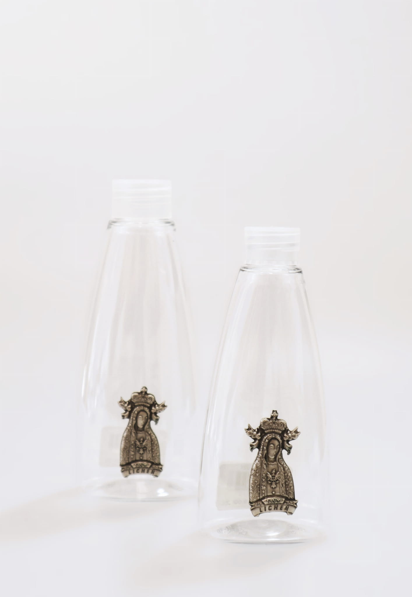 Wysokość: 12,5 cm Pojemność: 100 ml Butelka plastikowa z wizerunkiem Matki Bożej Licheńskiej