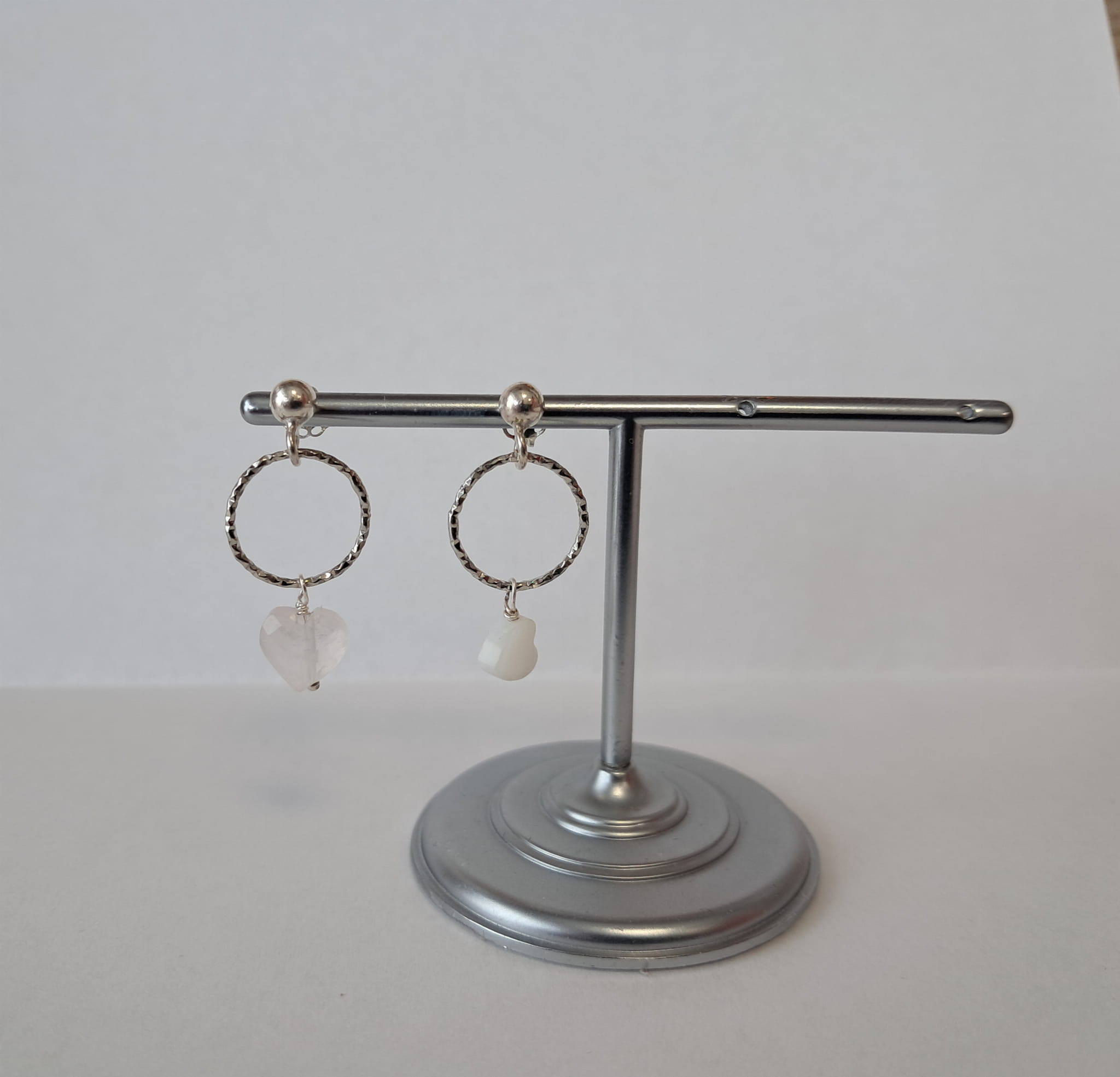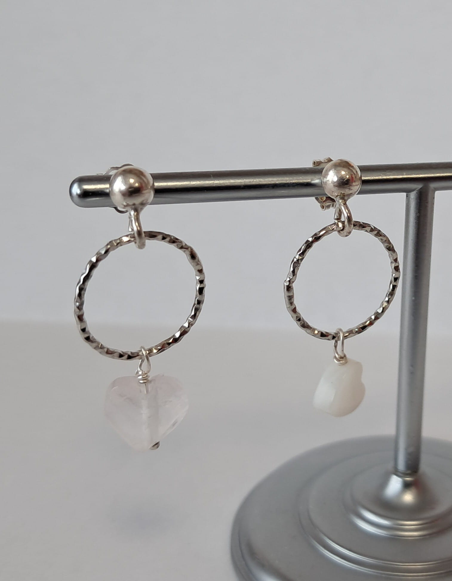 Pięknie wykonane kolczyki srebrne z dodatkiem kamieni z motywem serca.. Produkt wykonany ręcznie.
