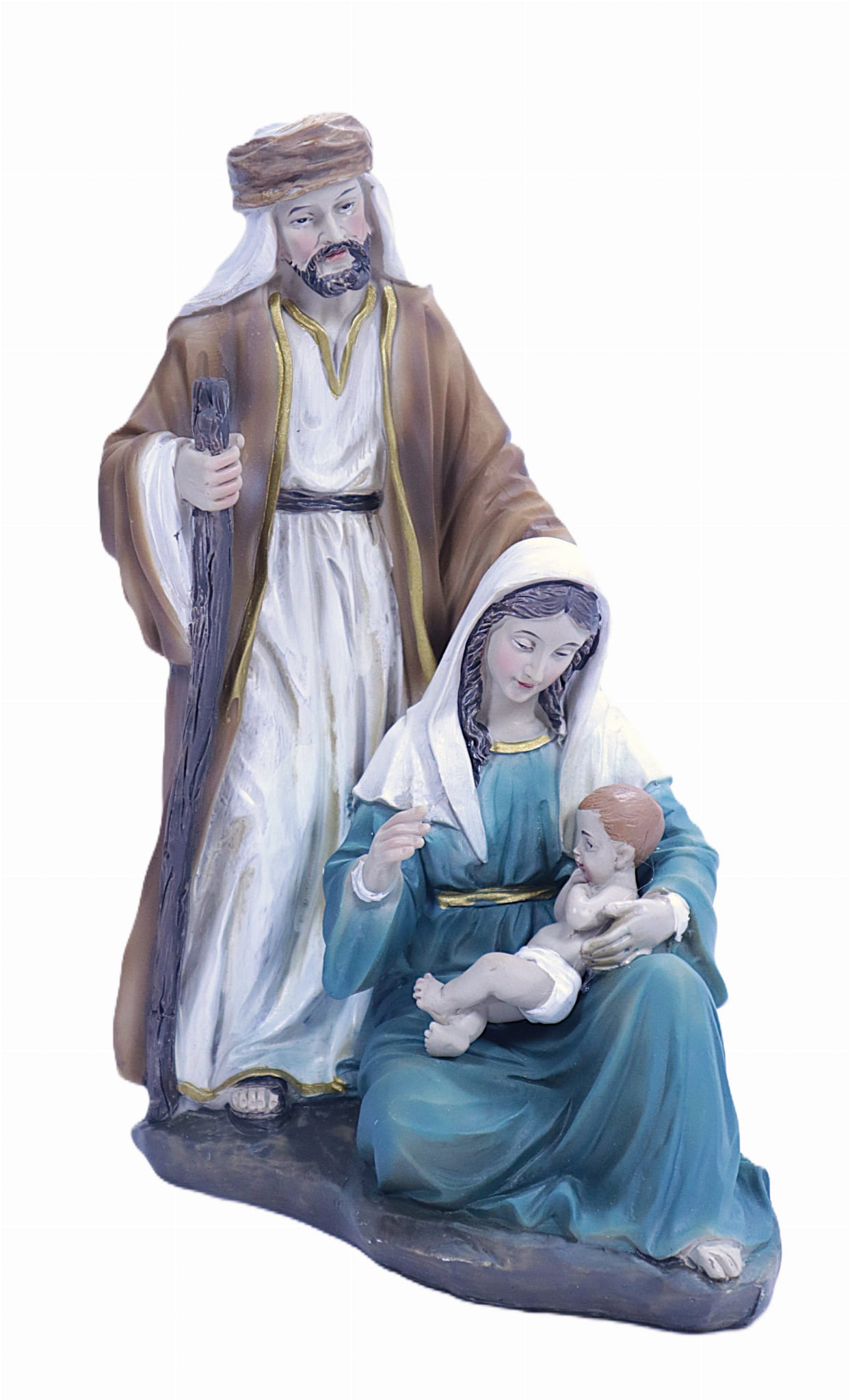 Figura przedstawiająca Józefa i Maryję z dzieciątkiem wykonana z masy żywicznej.