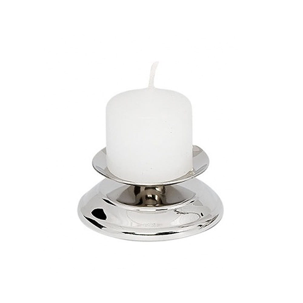 Wysokość: 3 cm Materiał: stal Kolor: srebrny Świecznik w kolorze srebrnym, wykonany ze stali nierdzewnej (chromowo niklowej) o wysokości 3 cm. Zabezpieczony został wysokiej jakości lakierami, tak by był trwały i służył wiele lat. Oferta dotyczy samego lichtarzyka, bez świeczki.